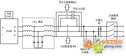 电路将IGBT模块、控制单元、驱动单元、直流支撑电容(C10)、均流电感(L1~L9)、吸收电容(C1~C9)、两个交流电流传感器(x1、x2)、两个交流电压传感器(LV-2、LV-3)、一个直流电压传感器(LV-1)、共模磁环等变流器所需的重要零部件集成在一起,组成一个功能相对比较完整和独立的模块。