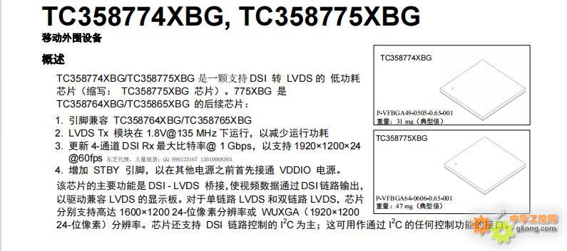 低功耗:TC358775XBG采用低功耗设计,能够延长移动设备的电池寿命。