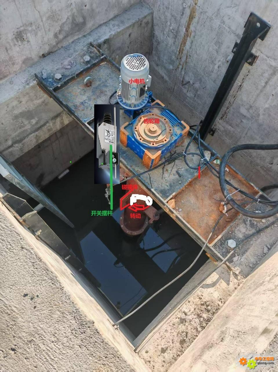可以做个顶杆把力传上来,上面放个不锈钢电箱,限位开关放电箱里。