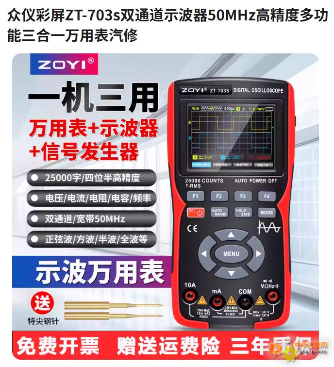 入手过一台三合一多功能万用表,还可以。对于维修电子设备(特别是需要测波形的电子设备)来说是比较方便的。