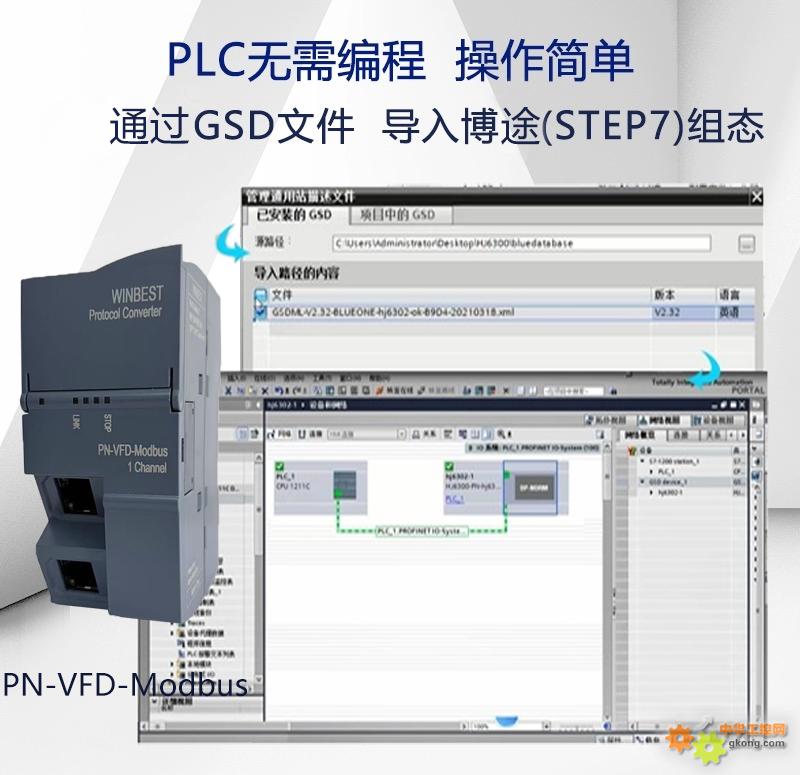 PN-VFD-Modbus是一款 RS485变频器 转 Profinet 的网关,专为带有485通讯变频器所设计,可以和各主流品牌变频器通讯,如西门子、台达、ABB、安川、汇川等,通过对应指定型号变频器的GSD 文件导入到博途或者 S7 编程软件,自动生成 I 地址和 Q 地址。西门子 PLC 无需编程,不用编写 Modbus RTU 程序,直接 IW 或者 QW 就可以读写控制 变频器。
