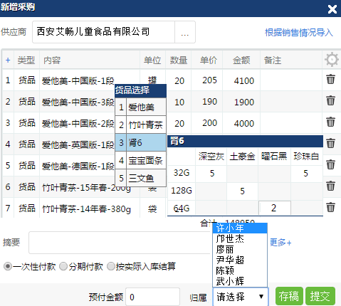 采购订单全面记录和管理围绕已成交采购业务的各项经营活动:订单明细(含成交/已验收/已收货数量)、客服、收货/交付、收支、付款计划、实时的本单账务核算(成交金额、预付金额、已付金额、当前应付、当前应收、已验收/收货金额、其它已支出费用、违约金...