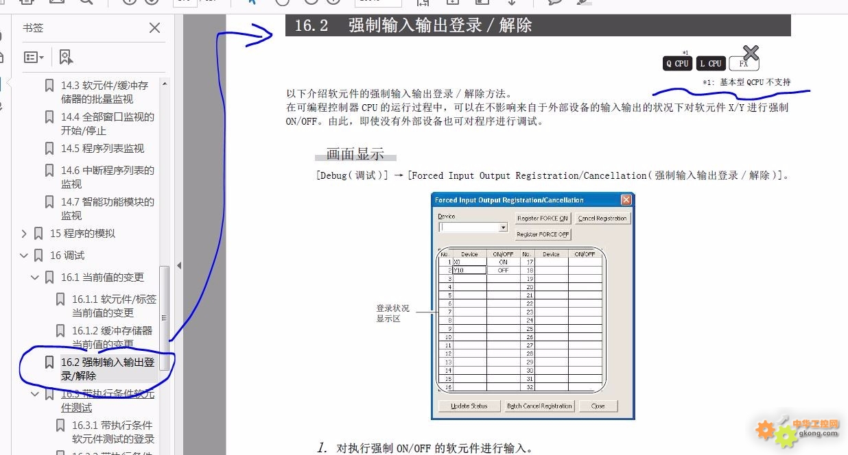 请问各位大神,melsoft系列的GX WORKS2 怎样可以使用 强制输入输出登录/解除