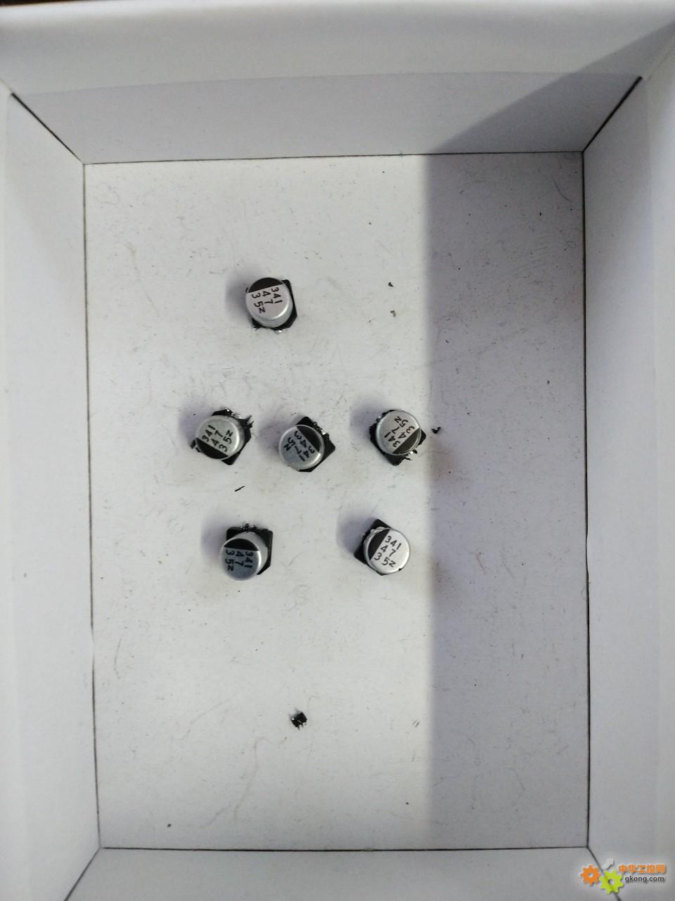 4、测4个47UF/35V电解电容,容量都只有3XUF,全部用100uF/50V更换,上电,OK。
