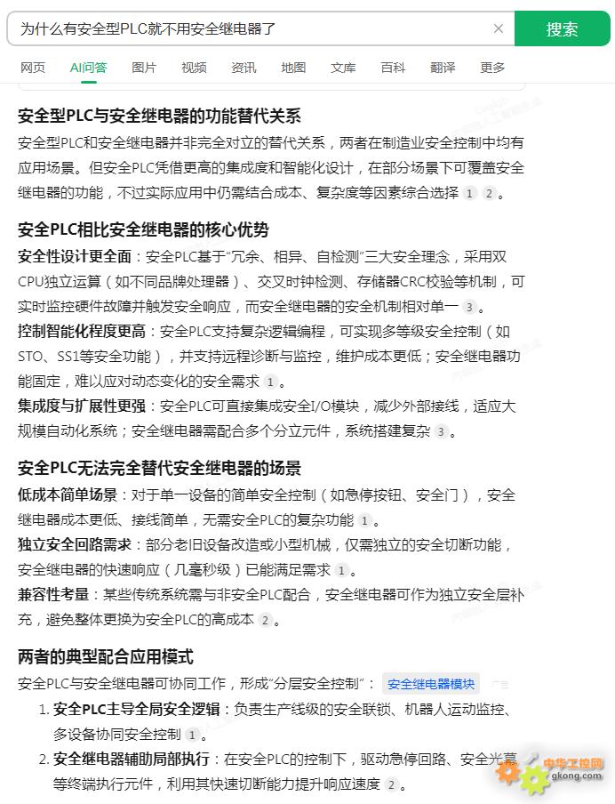 这方便有什么标准说明吗? 一直没太理解为什么有安全型PLC就不用安全继电器了?