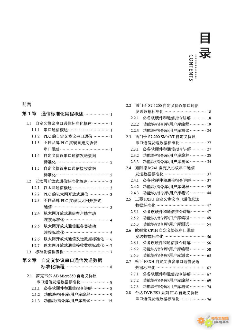 在内容编排上,本书遵循“由浅入深、循序渐进、实战导向”的原则,系统梳理了PLC通信标准化开发的全流程,共分为9个章节,各章节逻辑连贯、重点突出,层层递进地引导读者掌握核心技术: