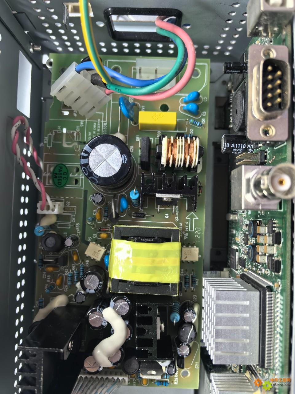 前几年,也是一台自用安泰信频谱仪AT6601,没怎么用,突然一天开机后示波管不亮了!检查发现示波管漏气了,更换了一个示波管,才修好,顺便看看焊接、用料、电路板,无语。
