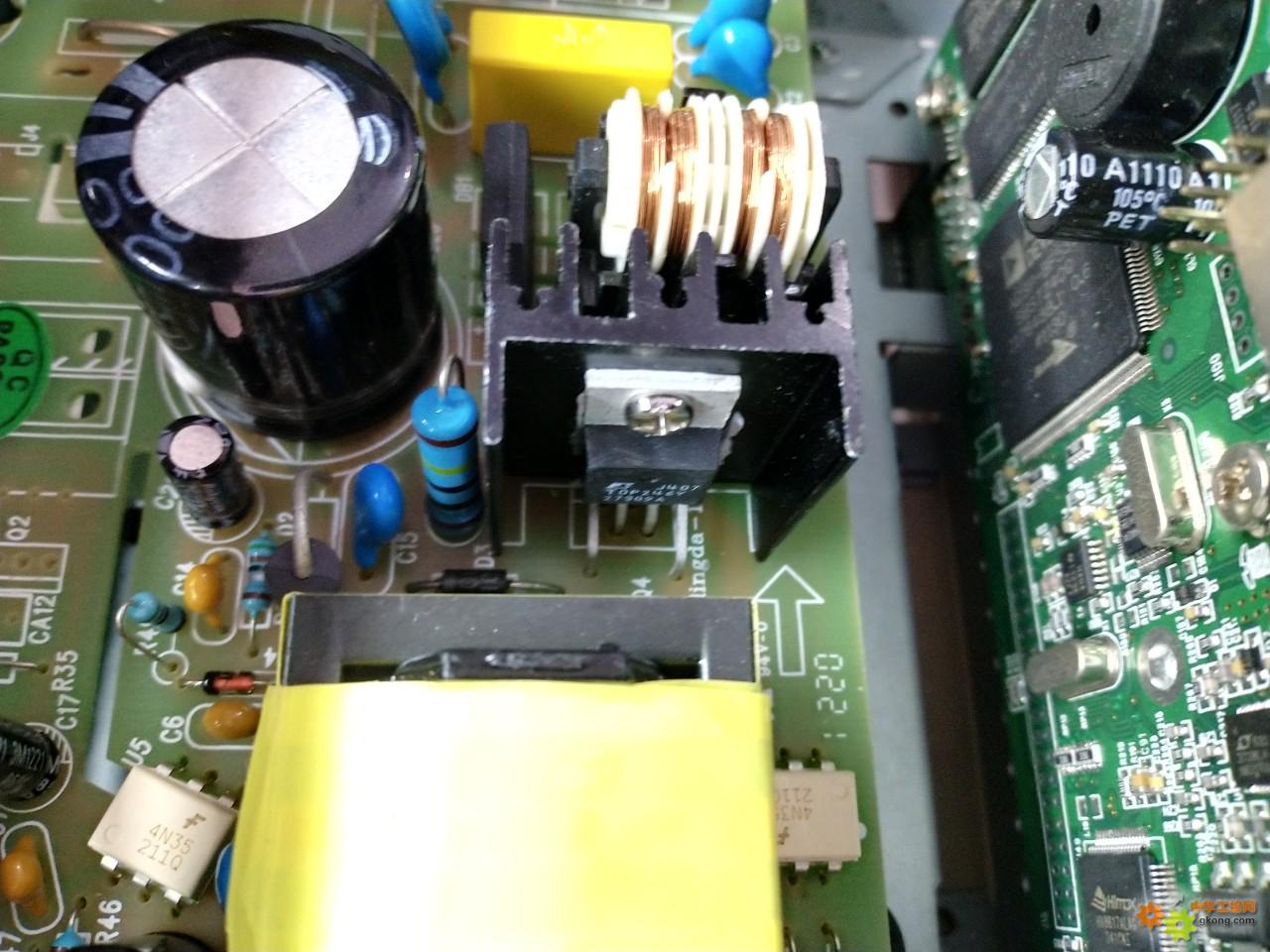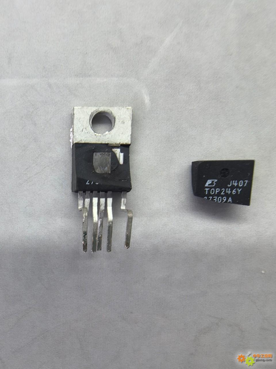 1、前几年,上电开机,突然无反应,开盖检查,直接更换电源管TOP246YN,正常。