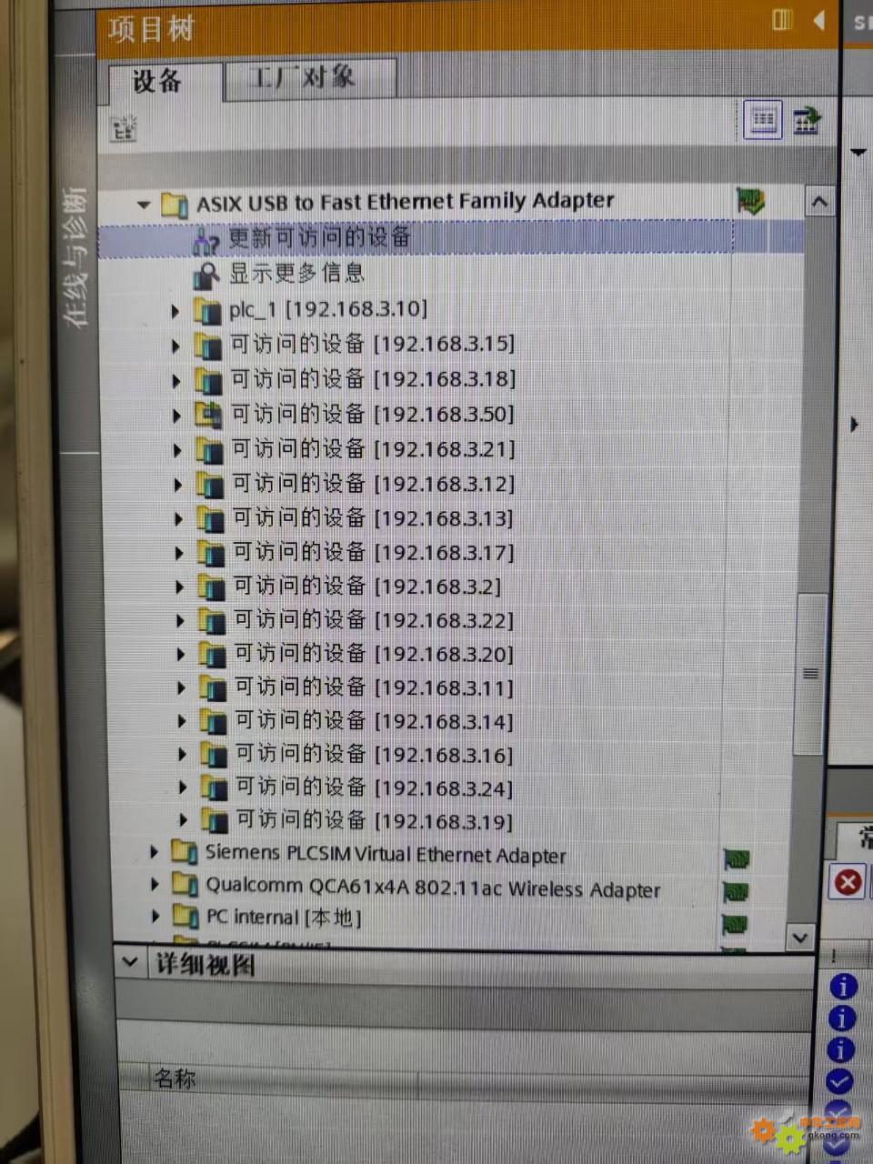 请教前辈,小弟用博途V20软件更新可访问设备,台达驱动器都可以搜索到,无法搜索到sick读卡器如何解决?