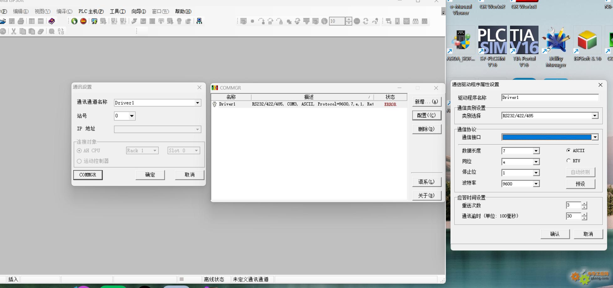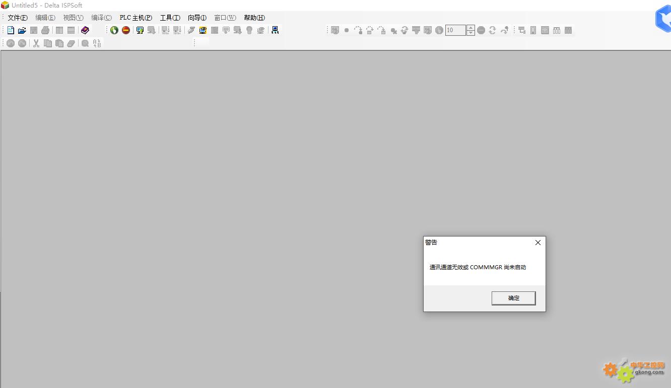 初次接触台达PLC, 联上DVP60ES00R2 PLC,打开最新版台达PLC编程软件,联机出现“通信通道无效或COMMGR尚未启动”,什么原因?怎么设置?