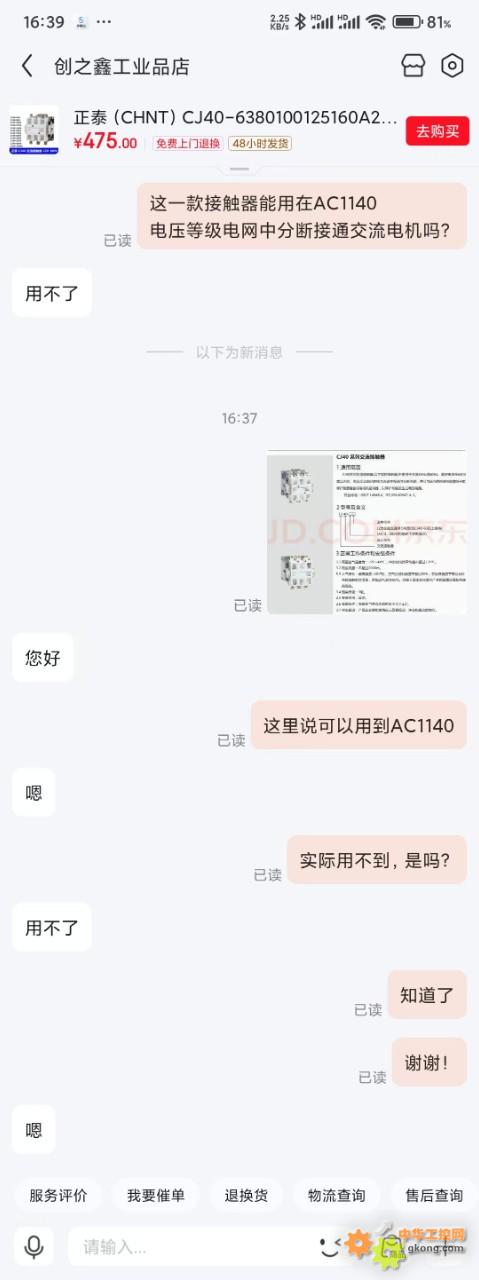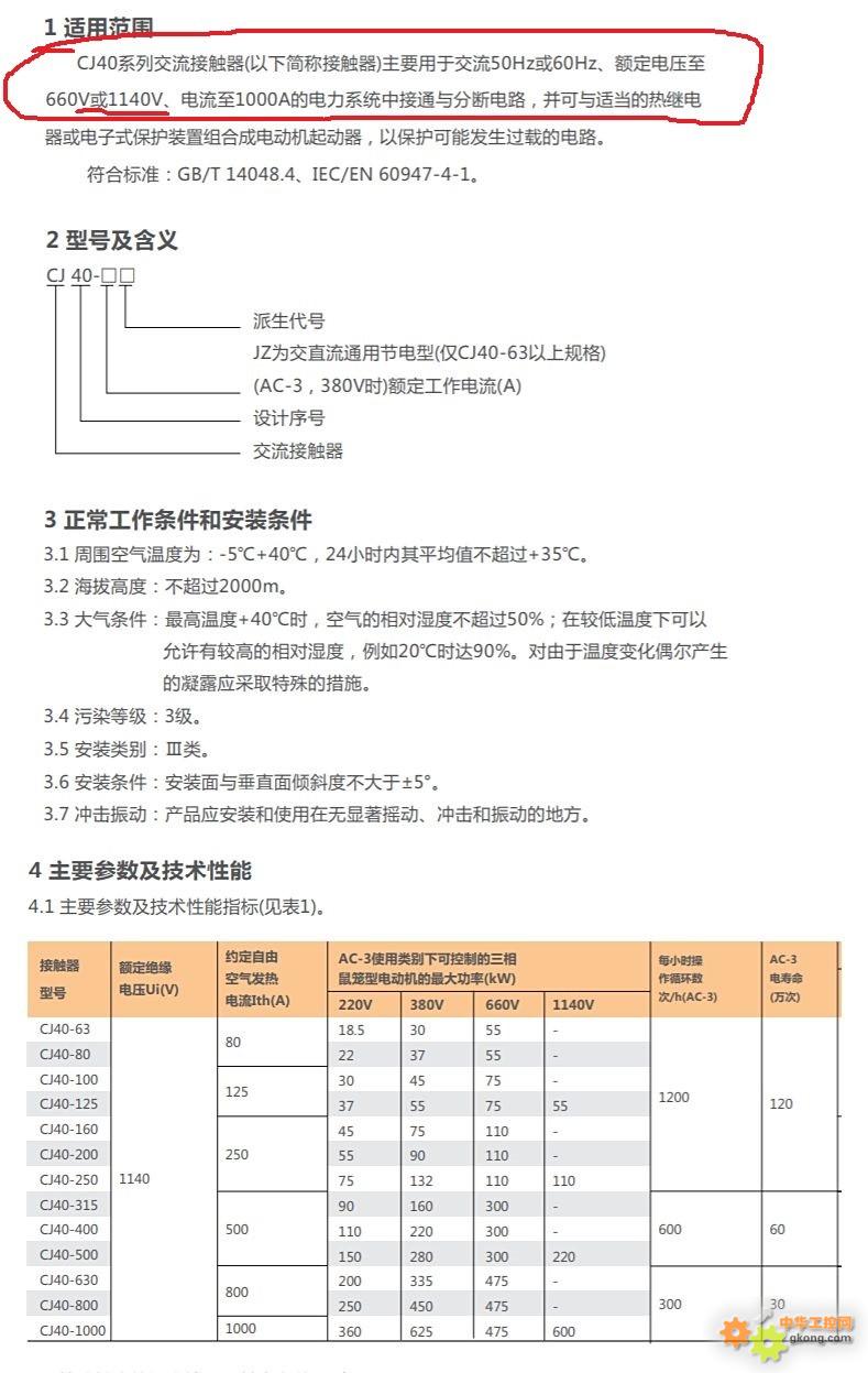 使用的CKJ5系列真空交流接触器现在涨价厉害,领导要求必须更换一款廉价的接触器。于是重点寻找了解CJ40系列产品,结果蒙圈了。样本介绍CJ40系列可以用在AC1140电路中,结果不论咨询线下还是线上,老板们几乎一致的答复,控制AC1140V电机就使用CKJ5系列真空交流接触器,CJ40系列不行(CJ20就更加不行了)。