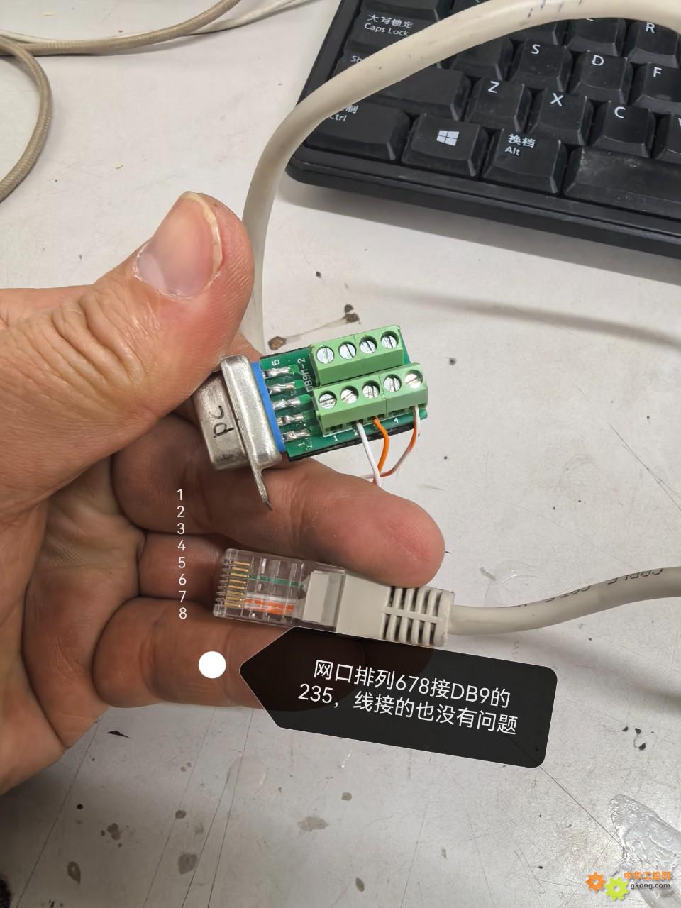 型号是汇川SV660N,他本机带一个CN5网口,是一个串口协议,需要串口线连接,我根据他们的手册,把一根网线的678连接上DB9的235,数据线做好了,用的也是力特的USB转232的线,力特的也换了2根,连接的这根自制的线,连了好长时间就是连不是,我现在试着换了3个电脑包括WIN7和WIN10系统,数据线做了2根,软件就是扫描不到这个驱动器,问题找不到,试着换了好几个驱动器也是这样,驱动器我看参数站号是1,波特率我设置了9600,现在找不到问题,问汇川客服,客服是一女生,也说没发现问题,那么这个问题到底出在哪里,各位老师谁这样连过这款伺服,可能是哪里的问题呢?自己做的线不对?还是哪里没设置好,谢谢各位老师们。困扰好几天了。