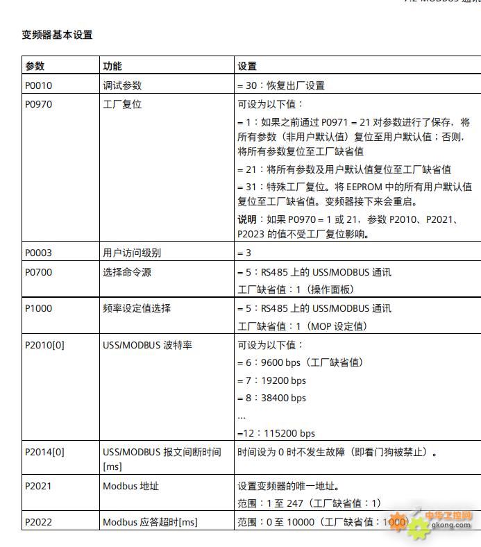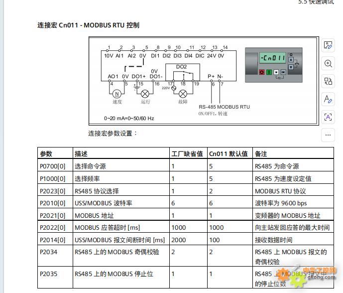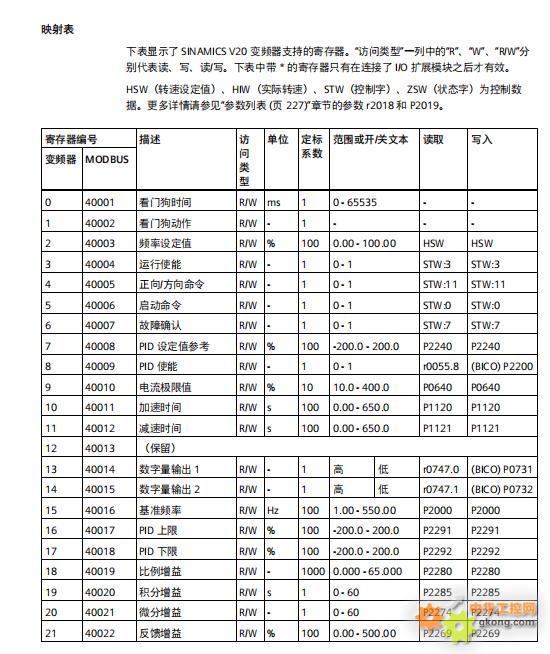 MCGS 和西门子的 V20变频器的通讯