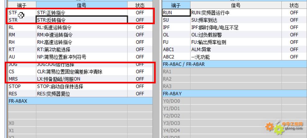 用a8ap 实现脉冲定位控制 编码器不是和电机同轴的 现在上电后 变频器软件监视发现stf 和str都没接通 使能也没接通 是什么问题呢
