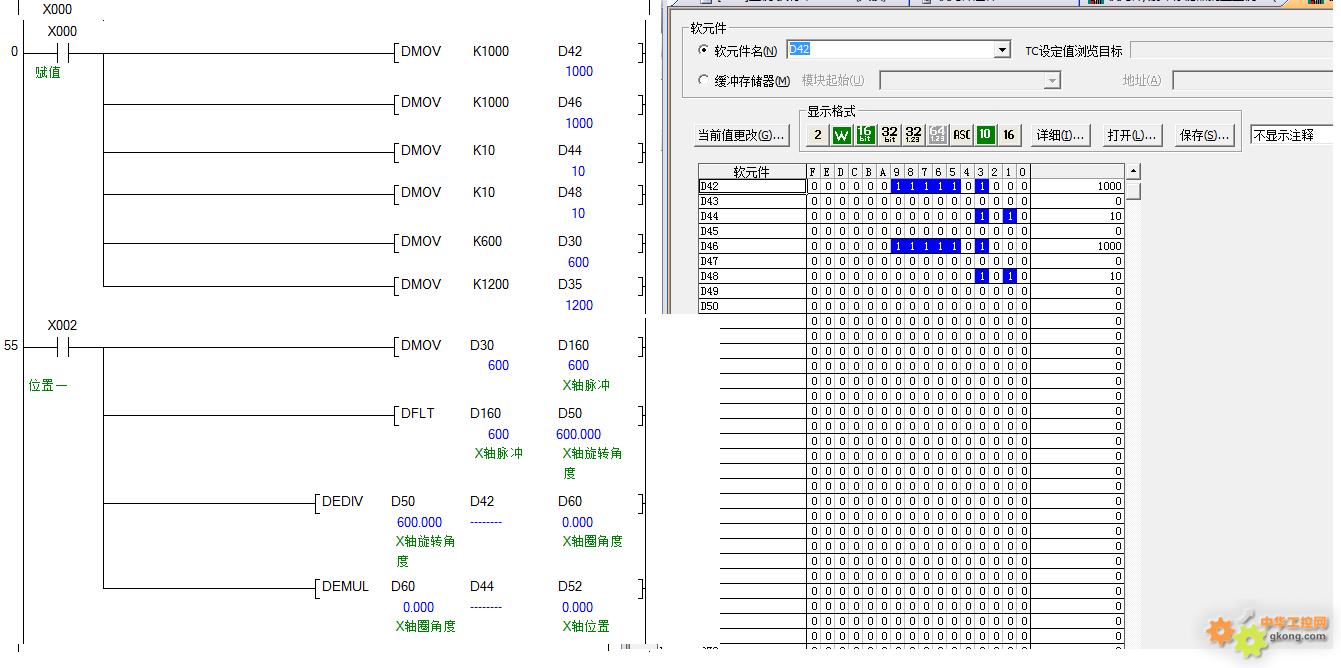 利用X0给相关D寄存器赋值