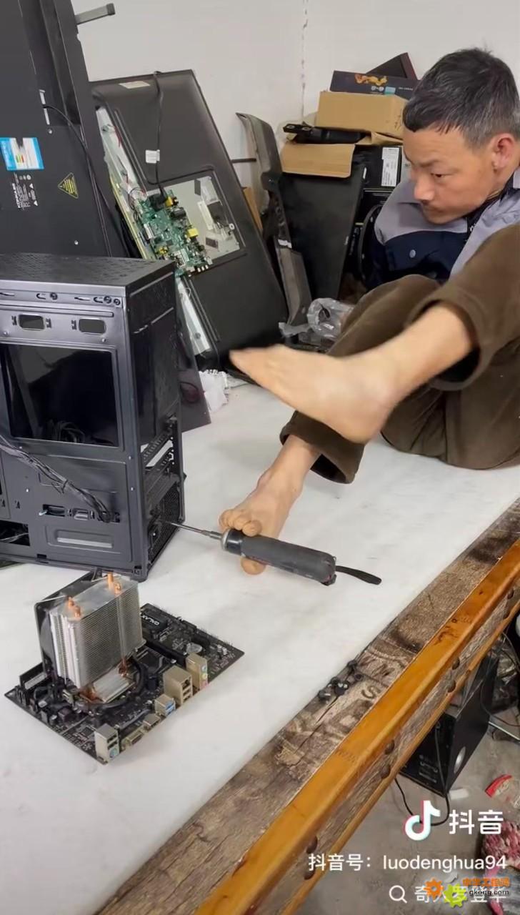 这才是真正的奇才,双脚组装一台电脑