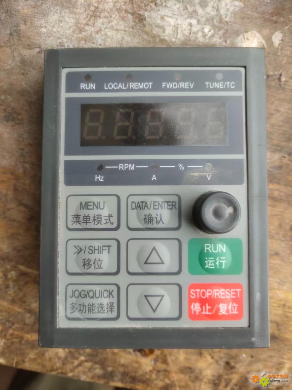 按 RUN 键启动,STOP 键停止。