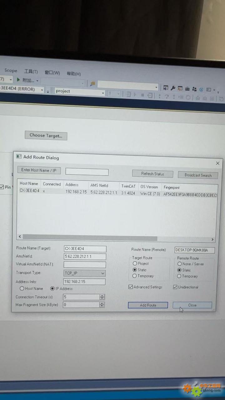 然后我通过连接远程桌面连接倍福控制器ce系统进行操作