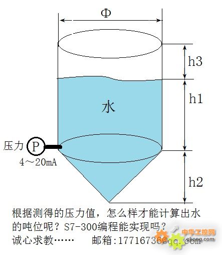 装满后可以容纳360t水,用315-2DP编程,该怎么实现呢?压力可以测得,容器的机械尺寸也已知,计算吨位,该怎么编写程序?诚心求教……