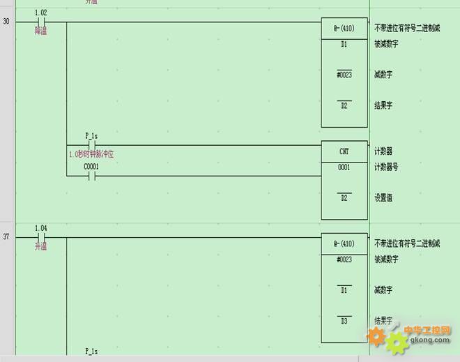 如附件所示,我将通道D0001里的数减去#0023后所得的结果放在通道D0002中,然后用通道D0002里的数作为计数器CNT0001里的计数值,为什么当计数一到,常开触点C0001一直保持闭合,无法实现计数器的自复位(本来CNT0001里的数减到零后,常开触点会瞬间闭合,实现计数器的自复位,然后计数器里通道的值应恢复,但是现在通道里的数运行一次后,却一直为零),所以想请问强人解答一下,能不能用通道里的数作为计数器的计数值。