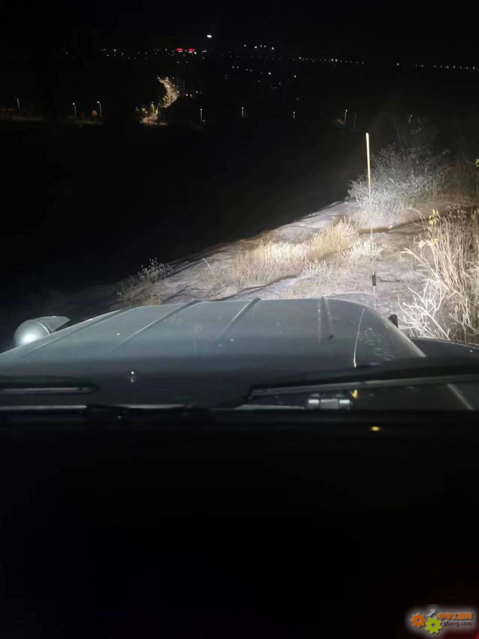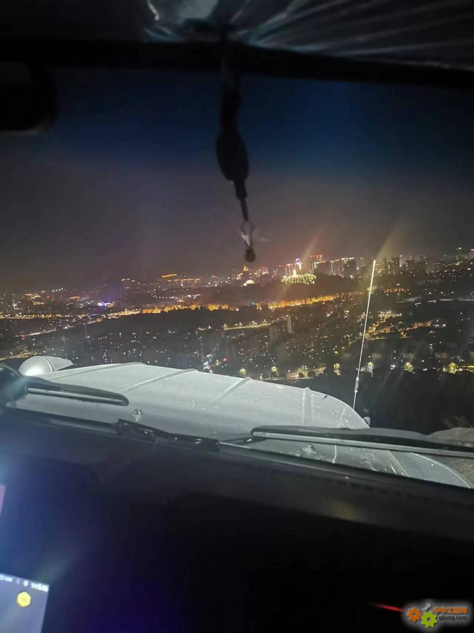 然后向右又沿着山脊继续前进。山脊并没有路只有岩石东一个西一个深一脚浅一脚 车子经过改装底盘高重心就高左右摇摇晃晃就会感觉更加明显 车子总是在倾斜到极限时被避震器及时弹回去。坐在里面总是有一种要侧翻的感觉而山脊的两侧又是只有岩石的大斜坡侧翻之后后果不堪设想。而这时的天空已经黑下来了我不敢看两侧只能向前看灯光照射到的地方。任由身子随着车子左右不停的摇摆有几次真的感觉要翻车的感觉随着心跳的加快 有一股尿意也慢慢袭来。我闭上眼睛开始祈祷希望早点结束这次旅程。突然我抓住门窗上面把手的右手被什么东西抽了一下 就像小时候做错事被妈妈教训时一样。“快摇上玻璃窗我们进入竹林了,这竹子打到很痛的。 ”我赶紧摇起玻璃窗。一时间车身上响起来被竹子拍打的声音。因为进入竹林两边有了保护我也放心了不少。在竹林的尽头有一片空地停了4辆已经调好头的越野车都开着灯 在等我们 因为路只能通过一辆车只有等我们上来之后他们才能下去。朱老板告诉他们让他们先下去 他要带我看看这边风景。然后他开车绕到空地后的几棵大树后面的一块大岩石上面,停好车眼前一片空旷可以看见大半个城区,果然角度不同风景大不相同啊。从车前根本看不见岩石的边了就像飞机驾驶舱的感觉。我只有这时才敢松开手拿出手机拍了个照片。但或许是被景色所吸引我居然在车里慢慢享受这独特视角带来的美景而忘记做两件那时我必须去做的事。1下车,2去上个小号。大概停留了十几分钟后。正看的入迷时听他说:“怎么样景色不错吧,“” 现在我们应该调头回去了。”在这么小的地方原地调头。我没听错吧。车子就这样不停的在前进后退中慢慢转变着方向,是的我应该在车下看他调头的而不应该在车里。悬崖之上尿意再次来袭啊。本以为面对悬崖是最怕的,每次前进都怕会冲出悬崖。可等到他调完头车尾对着悬崖时车子又变为了上坡起步的样子了 。每次的后溜车都能够听到车轮的打滑声音和小石子被甩下悬崖的声音而你又不知道后面的情况车轮到悬崖还有多少距离。我的心真的感觉快要到嗓子眼了。但是我只能紧紧抓住把手闭上眼睛心中开始祈祷希望可以快点平平安安结束, 下次再也不来。突然一次大的后溜车让我感觉到我的心真的有种要跳出来了得感觉嘴巴也不自觉的发出了啊的一声,好在随后就是一股强大的推背感将我向前推了一段很长的距离才停下。我知道应该是上来了,我睁开眼睛看见车子已经到了刚才的那个小空地上了头也已经调好了。谢天谢地!这时我才发现我全身都是湿漉漉的手上,身上 还有连座椅上也是。由于下面的人还在等我们我们也就没有过多的停留。回来的路已经经历过一次相对轻松了很多。只是那段大斜坡上来时是躺着上来,下去时只能站立身体根本不能坐在座椅上面,两只手向前放在中控台上支撑身体。 好在下面的人们给我打了灯, 心里也没那么恐慌。最终我们也有惊无险的到达了集合点。