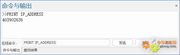 方法二:在线命令获取控制器IP地址,输入:PRINT IP_ADDRESS,如下图所示: