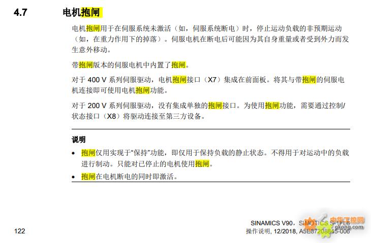 现换成西门子V90伺服以后,通过翻看手册和网上查找,似乎没有这个功能,只要使能上电就打开,使能OFF抱闸就关闭,需要自己再PLC中来控制抱闸。