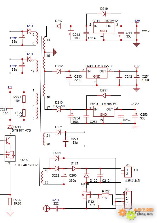 施耐德ATV320-5.5-7.5KW变频器的D214到哪儿了?在跑电路时,找不到位置。看样子应该到一个整流二极管上了,再到变压器,现在死活找不到地方,多层板。有可能毛病就是这里,但不知道具体是哪里。
