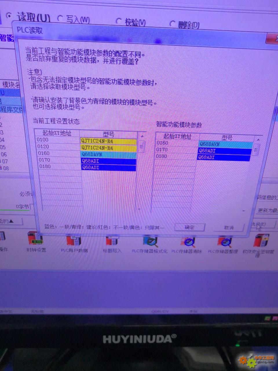 改用USB与PLC直接通讯,又提示智能模块与实际设置不一致,是否覆盖,点是继续读取,然后又报错什么有其它设备在通讯,需停止后再读取等提示。