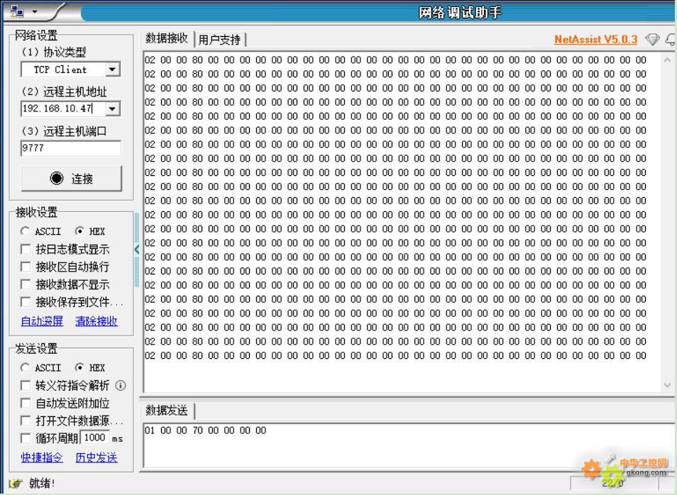 如上图,远程协助操作现场PC,使用网络调试助手连接192.168.10.56能收到数据,连接192.168.10.47,就是接收不到数据。我在公司使用相同程序,网络调试助手连接192.168.10.47能收到数据。