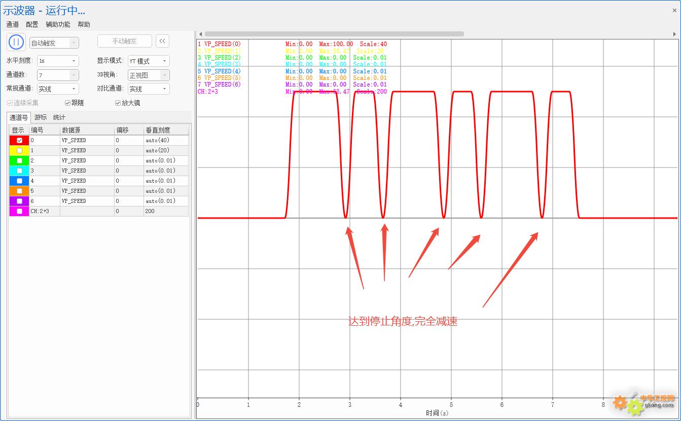→达到停止角度,完全减速。