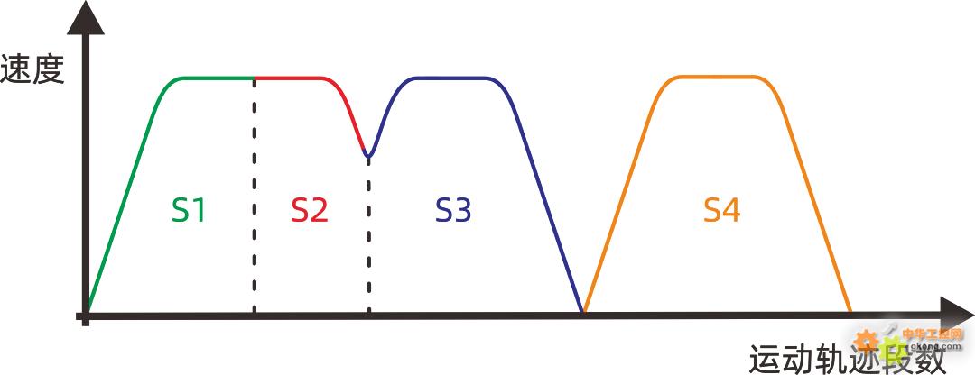 控制器会对指令间轨迹变化的夹角进行提前识别,比较其与减速/停止角的大小关系,提前决定是否进行减速,保证在指令连接处平稳过渡。
