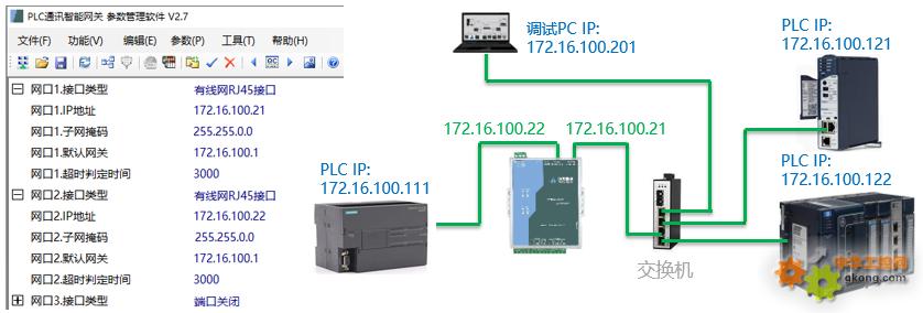 同一个智能支持多个品牌的PLC之间多对多通讯,最多8000个字节的数据交互量;网关内每个连接采用独立的线程运行,毫秒级别的数据交互,同样的数据量在同等质量的网络通讯时,数据刷新速度同总线;智能网关包含IGT-SER、IGT-DSER、IGT-WSER等多种型号,可以根据实际场景灵活选择。 以下是几种常见的网络结构示意图: