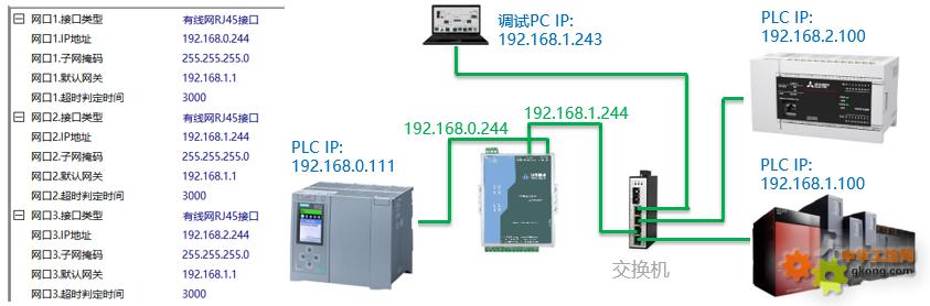 IGT-DSER智能网关的两个网口设置为同网段,每个网口是独立的子网。