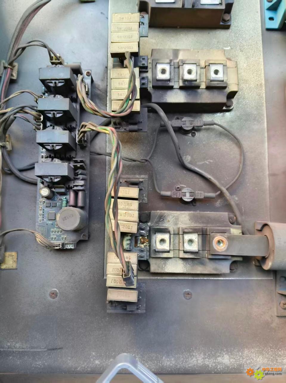 一个塑料厂的电磁加热柜,里面这种黑色脏污很严重。主板上,模块上都是。电容上也有这种脏污爬电烧灼的痕迹。大家怎么处理的。谢谢